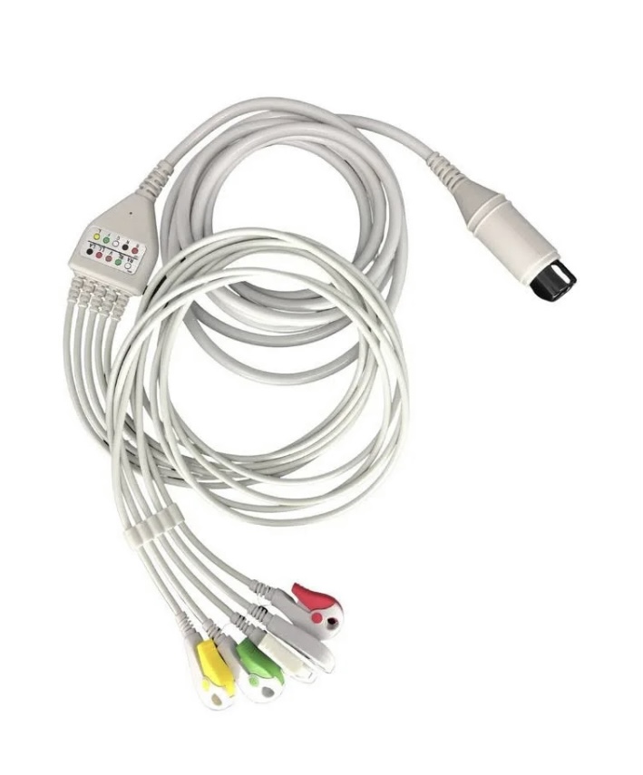 Cabo paciente 05 vias garras neo pinch, compativel com Oreum IMFTEC, indicado para utilização em monitorização cardíaca, possui caixa intermediária blindada e identificação de posicionamento de derivações.